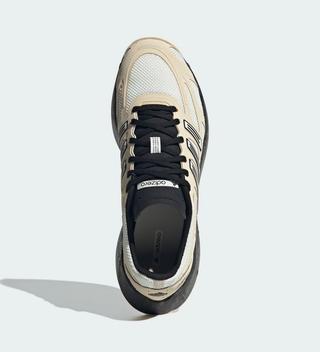The latest colorway, “Sand Strata,” introduces a refreshing new approach to color blocking that blends subtle earth tones with bold contrast. Off-white mesh uppers lay the foundation, with a creamy Sand Strata glaze that wraps the overlay panels. It’s balanced by deep black hits on the tongue, lining, laces, and Three Stripes, while adizero branding also arrives trimmed in black for a crisp edge.