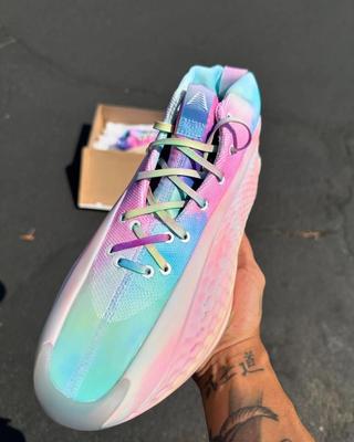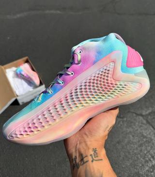 The Anthony Edwards 1 Low “Tie Dye” features a futuristic design executed with meticulous precision, including a bold TPU Generative Support Wing for stability and containment while ensuring mid-foot breathability, a lightweight Light Boost midsole for maximum energy return without adding excess weight, and an enlarged herringbone outsole pattern providing superior grip for elite-level court performance.