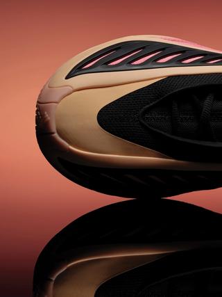 Material-wise, Edwards' Adidas AE 2 has appeared with a mix of lightweight patterned mesh and glossy synthetic panels. Nylon textiles cover the upper from the toe to the Achilles, transitioning into a V-split that opens to an inner neoprene bootie. This design element is reminiscent of some iconic Yeezy models, delivering a blend of performance-oriented features with streetwear appeal.
