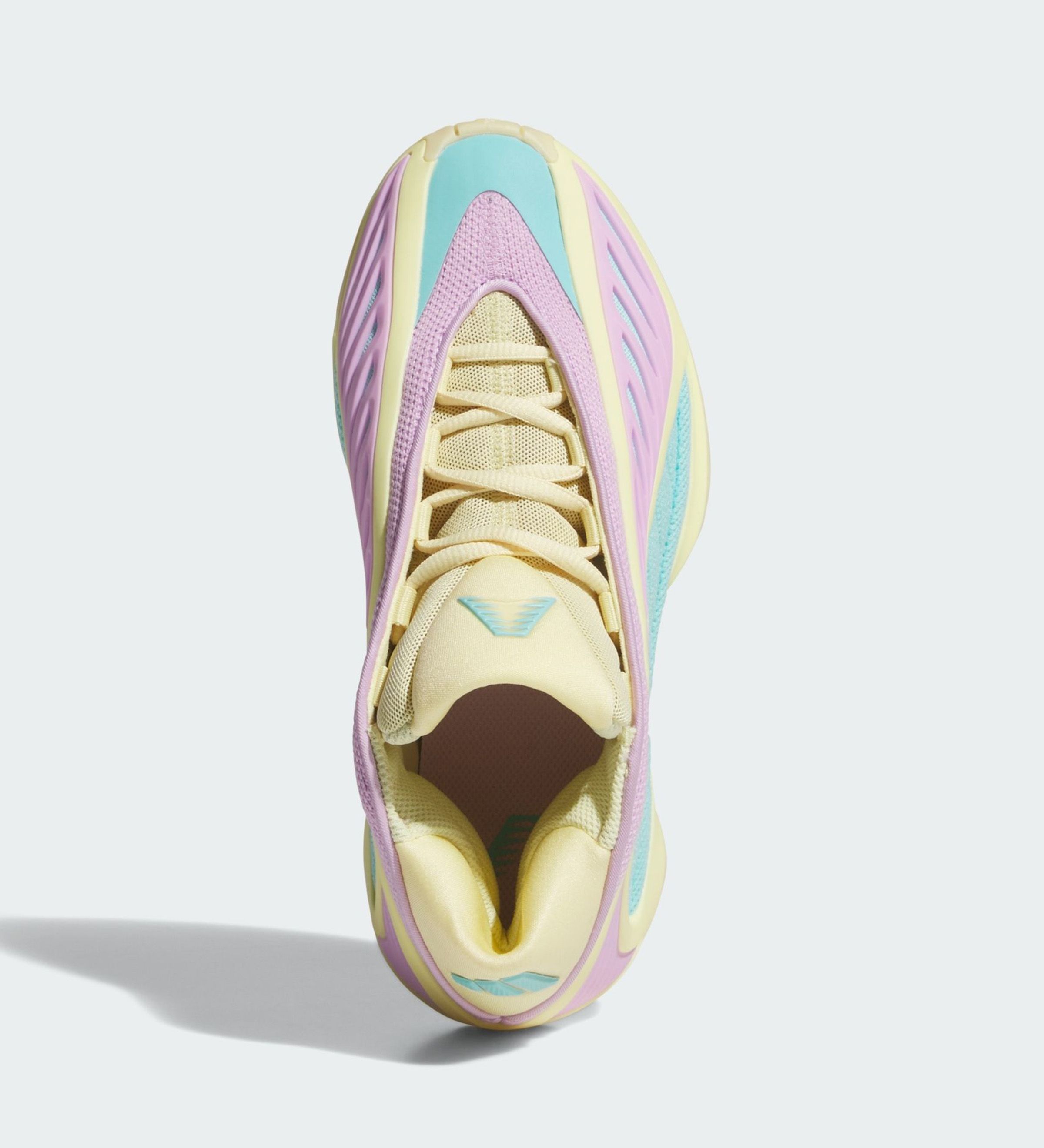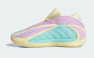 Built on the same sculpted foundation as the adult AE 2, this “Easter” edition leans into soft pastels rather than game-night aggression. Butter yellow frames the outsole and tooling, while mint mesh panels and lavender accents wrap the upper. The result feels intentionally playful without tipping into novelty — a balance adidas has been getting better at striking with Anthony Edwards’ second signature model. It’s colorful, but still grounded in performance design rather than costume-like execution.