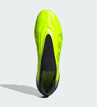The Copa Pure 3 embraces a high-energy aesthetic, covering its entire upper in a bright yellow hue accented by deep black branding. A major design highlight is the oversized "COPA" lettering, which overlaps the classic Three Stripe logo on the lateral side, offering a modern twist to the heritage-inspired silhouette.