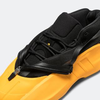 In contrast to the bright upper, the sneaker features a sleek black upper shroud, tongue construction, and inner bootie, keeping in theme with both the original colorways of the inspiring and inspired designs.