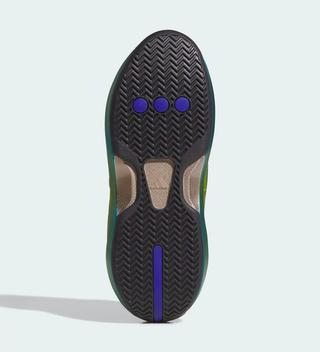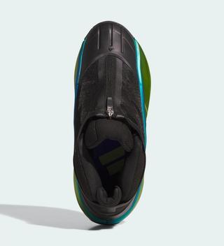 The latest iteration, the Adidas Crazy IIINFINITY "Iridescent," takes things to the next level with its boldest look yet. The shoe’s profile shell shines in a striking "Scream Green" iridescent finish, with hints of blue framing the bulky sidewalls and midsoles, creating a mesmerizing, dynamic effect. The rest of the shoe is grounded in a sleek, all-black aesthetic. From the rubber toe and heel to the mesh inner bootie, the dark tones contrast perfectly with the vibrant luminosity, making the design pop even more.