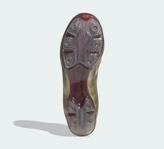 A medley of drab tones take over the bulk of the synthetic upper, allowing for elements clad in a wine-reminiscent color to revel in the spotlight across the forefoot, inner lining, and hind-foot. Below, the protected stud plate also opts for a claret-like finish similar to what's found on the Arsenal 25/26 Third jersey honoring Highbury.