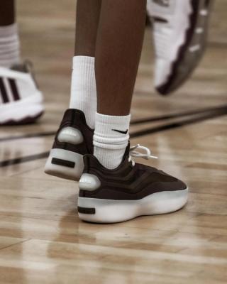 Although specific technical specifications are yet to be revealed, early glimpses show a mid-top cut with smooth paneling accented with stripe detailing. The pair features a semi-translucent gum sole underfoot, adding a distinctive visual element to the overall design. A key area of focus is the toe box, which Lorenzo has designed to be both functional for basketball and stylish for off-court use. A new shoe version also incorporates a TPU cage for added support, showing Lorenzo’s commitment to combining performance with luxury.