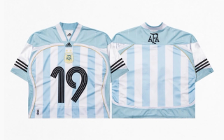 Retailer UNDEFEATED has listed its stock of the newly-surfaced quartet as "Remix Jersey" while CHAMPS makes no mention of "remix" in its listing for Argentina's top. Nevertheless, a quick glance at all four jersey options evoke images of the types of jerseys that'll be worn at Super Bowl LX instead of what's typically seen at a football (soccer) match. The designs, then, effectively bring fútbol and U.S. football together ahead of a World Cup™ that'll see the majority of its games played across the United States of America.