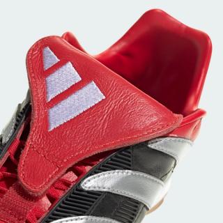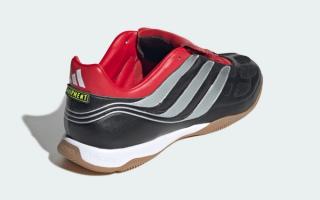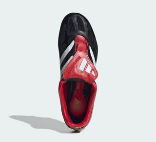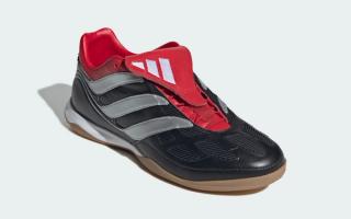 A near-identical Predator Precision Street joins the premium capsule. The pair takes on a mostly "Core Black/Vivid Red" ensemble, but profile 3-Stripes branding indulges in a "Silver Metallic" finish that further modernizes the design from its early aughts origins.