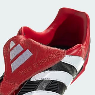 The Made in Germany product features a high-quality leather build across the upper, forgoing the HybridTouch 2.0 setup that appears on standard editions of the Predator Elite FG. STRIKESKIN zones reprise their roles throughout the forefoot and along the medial profile, menacing goalkeepers. Made in Germany messaging is embroidered onto the Fold-Over Tongue (FT) and printed on the all-new insole to differentiate the pair of boots from other offerings.