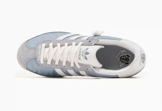 Further elevating this special edition, the Gazelle boasts the Footpatrol gas mask logo on the tongue and heel, with corresponding Trefoil logos on the opposite sides of each shoe, symbolizing the collaboration's blend of iconic branding and boutique uniqueness. Each pair also comes with a rubber “Consortium Cup” keychain and a co-branded pouch made from Primaloft fabric, extending the down jacket theme into the packaging.