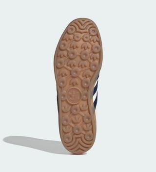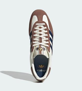 The anniversary edition leans into premium materials and heritage cues to celebrate the Gazelle’s six-decade journey. A smooth white leather upper sets the tone, embroidered throughout for a tactile finish. Dark navy snakeskin overlays add a sharp contrast to the stripes and heel, while rich chocolate brown suede appears on the toe cap, eyestay, and heel wrap, grounding the design in retro sport aesthetics. Underfoot, the signature gum sole remains untouched, keeping the classic Gazelle Indoor DNA intact.