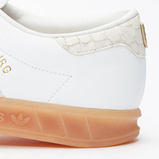 Here, premium white leather uppers are paired with premium off-white Snakeskin-textured leather at the profile Three Stripes and heel overlay. Furthering the pair’s heightened aesthetics is the inclusion of soft leather liners and elegant gold foiling at the quarter and tongue. Special-edition herring insoles are reminiscent of pre-game pubs, while regal badges on the heels hint at St Pauli FC’s world-famous logo. Underfoot you’ll find a classic light gum rubber outsole which is translucent enough to show an underfoot herring detail at the forefoot.