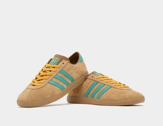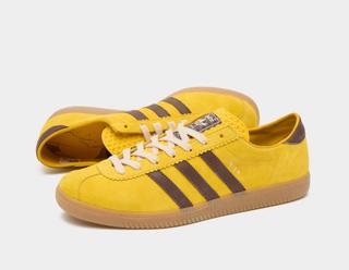The 'Wien City' Collection features two distinct versions of the Adidas Samba, each boasting a design that's as vibrant and intriguing as the city itself. The first variant presents an all-yellow body, reminiscent of Vienna's bright city lights and lively urban atmosphere. This pair is accentuated with rich brown detailing and Adidas's iconic triple stripe, creating a striking contrast. Complementing this vibrant look is a classic gum sole, adding a timeless touch to the modern aesthetic.
