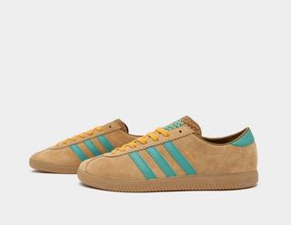 The second pair in the collection takes a subtler approach with a deep brown base. This model is highlighted by turquoise detailing and a matching triple stripe on the side, reflecting the natural beauty and historical richness of Vienna. This colorway not only offers a nod to the architectural accents found throughout the city but also adds a splash of color that makes the design pop.
