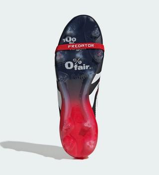 The design echoes the roots of the Predator series, combining a sleek black upper with bold white Three Stripes and red accents. The result is a striking yet timeless aesthetic that recalls the glory days of the silo’s debut. One of the most distinctive features is the return of the original Predator logo on the outstep, a subtle but meaningful tribute for longtime fans of the series. Adding to the nostalgia is the Predator slogan etched onto the soleplate: "100% legal, 0% fair."