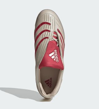 The first colorway to surface is a Bayern Munich-ready beige and red combination, reminiscent of classic terrace kits and the club’s historic color palette. The soft beige upper is complemented by bold red accents, making it an instant fit for retro football aesthetics while maintaining the performance edge expected from the Predator lineage.