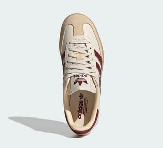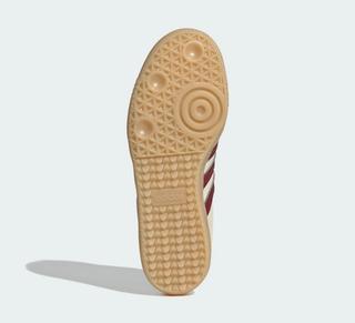 A classic white-on-black colorway appears alongside a white-on-red update. The former preserves the heritage aesthetic that has made the Samba a go-to choice for decades. Beige suede overlays on the T-toe and premium leather lining bring a refined edge to the design, but the most noticeable change comes in the swap to a nylon tongue—a unique twist that enhances comfort and modernizes the sneaker without disrupting its vintage appeal.