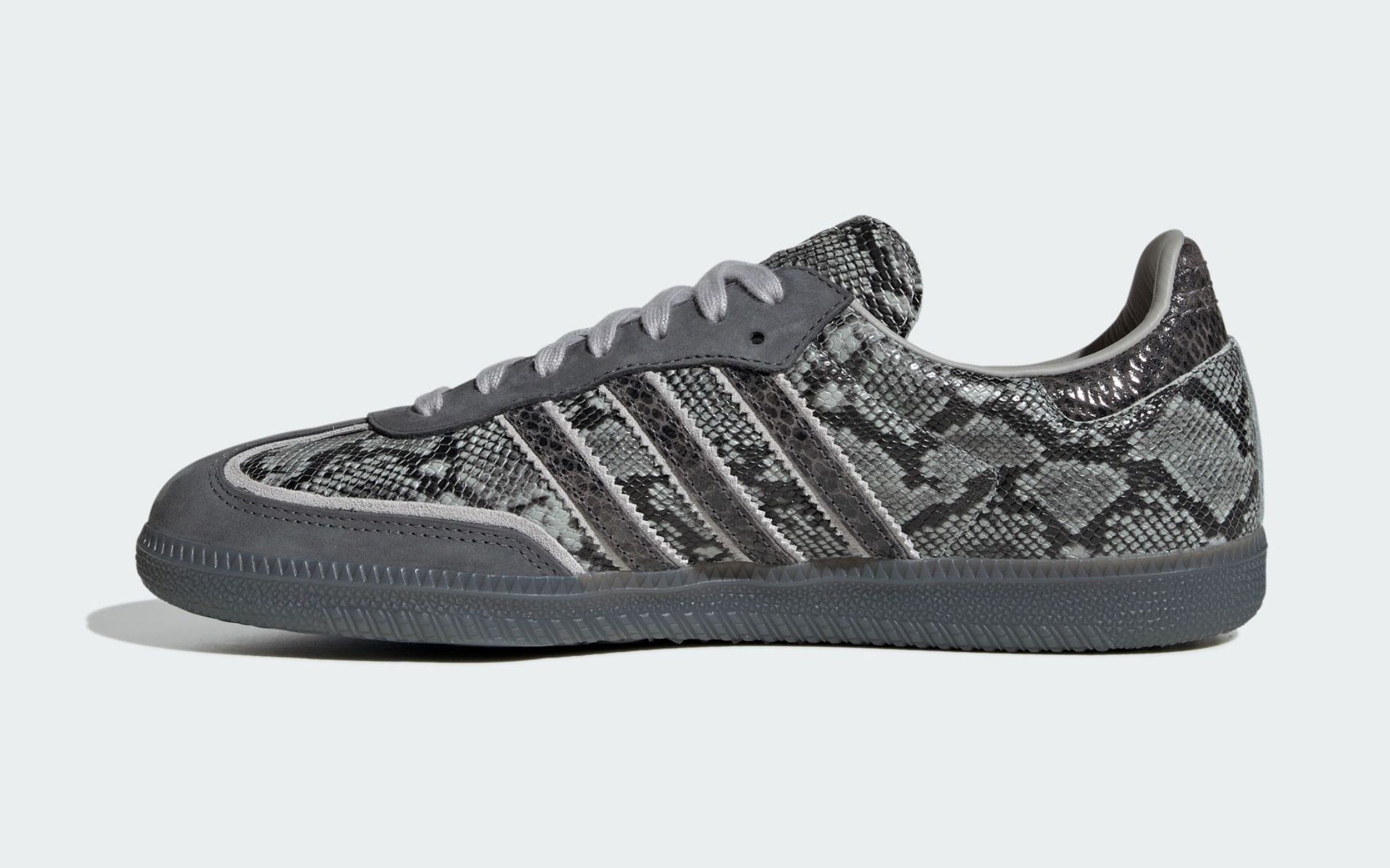 The adidas Samba “Grey Snakeskin” is expected to release in 2026 via adidas.com and select retailers.