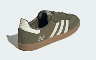 The first pair in the pack is set to release on January 3rd and is dubbed "Focus Olive." This sneaker boasts a durable nylon upper in the rich, earthy, titular olive hue, ideal for winter's muted color palette. Enhancing the design, the Three Stripes overlays and heel panels are rendered in a contrasting "Wonder White" hue, adding a touch of brightness to the dark winter days. The shoe is grounded by the heritage gum rubber outsoles, a signature element of the Samba that provides both style and stability.