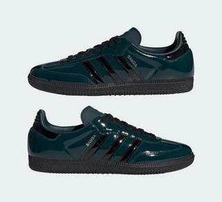 Enjoy official photos of the patent leather Originals style below. Pairs of the "Aurora Ivy" Samba are expected to land via Adidas.com by autumn.