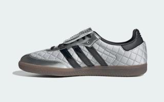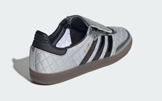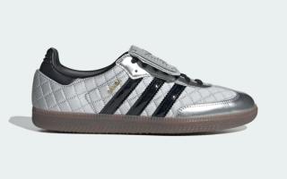 One pair opts for a silver-toned finish, pairing metallic nylon panels with glossy overlays and black Three Stripes. The reflective quality adds a fashion-forward edge, while the translucent gum outsole keeps things grounded in Samba heritage. The second colorway takes a darker route, dressing the quilted nylon in black with matching patent overlays and silver branding hits for contrast. Together, the two form a cohesive pack rather than standalone releases, unified by texture and finish rather than color blocking alone.
