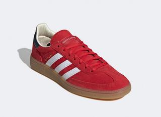 On the other hand, the Handball Spezial takes a bolder approach with an all-red body, set off by crisp white stripes and a navy heel tab. This color scheme, along with gold detailing, evokes the French tricolor, offering a more aggressive look that stands out both on and off the court. The red and navy blue insole continues the theme, adding an additional layer of detail that speaks to the meticulous design ethos of both Sporty & Rich and Adidas. This sneaker is designed to make a statement, celebrating the spirit of competition and the elegance of its French inspirations.