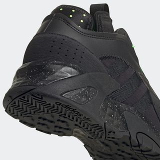Originally released back in 92′, the adidas Streetball silhouette was relaunched last year in an effort to get back to the grassroots of basketball and reinvent the shoe for today’s generations and players grinding on asphalt arenas (rather than hardwood courts) such as Rucker and The Cage in NYC. This latest installment to the newly invented Streetball catalog presents a near triple black colorway, which is a change of pace from its last few additions. The assortment of materials used across the design are leather, rubber, nylon, and synthetics are all done up in black, resulting in a stealth appeal. At the foundation of the shoe sits a black midsole displaying a white speckled pattern throughout offering a monochromatic effect while a black rubber outsole frames the look. Completing the design and offering the only splash of color is the “Solar Green” located on the tongue branding, new toggle lacing system, and elevated heel support.