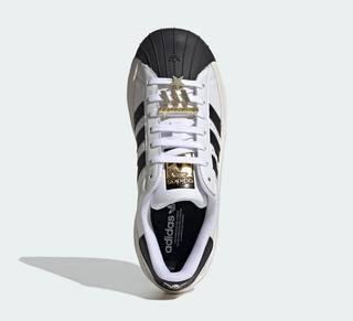 As with inline, standard editions of the shoe, the Superstar Bold dons "Gold Metallic" touches across its upper for regal flair. Text on the lateral profile joins branding on the tongue label in its shimmering finish. Furthermore, the reworked sneaker includes detachable metal accessories on the laces—including a Superstar word-mark, 3-Stripes, and five-pointed star—all done in gold.