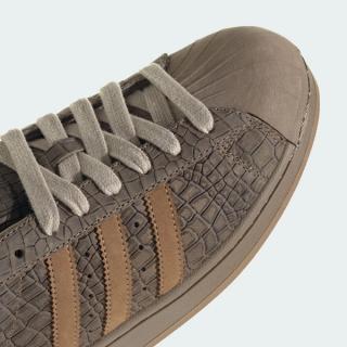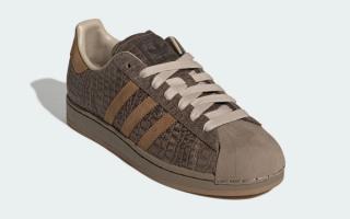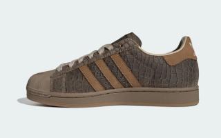 The latest adidas Superstar “Khaki Croc” fits neatly into that approach. Here, the brand leans into texture, swapping out traditional leather uppers for a reptile-embossed finish that covers the bulk of the shoe. The croc-style pattern brings a more tactile feel to the design, while tonal khaki shades keep things grounded and wearable. Three Stripe overlays arrive in a slightly lighter tan, adding just enough contrast without disrupting the overall palette.