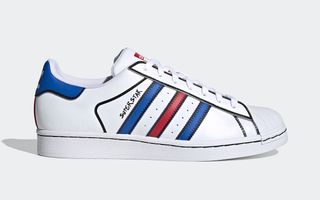In very Joshua Vides-fashion, adidas has outlined the pair’s main panels — and even the midsole stitchwork — with jet black ink, as if someone at the factory had simply taken a felt-tip pen to the pair. It’s set off against a classic white leather build with royal and red overlays and accentuations throughout. Completing the design is a hand-stylized “SUPERSTAR” motif at the midfoot to cap off the thematic.