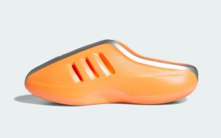 The design keeps the familiar Adifom IIInfinity language: a sculpted one-piece build, a Crazy 1–inspired aerodynamic profile, and side vents formed through the Three Stripe motif for airflow. Edwards’ version is the most expressive yet, pairing a high-visibility orange base with silver metallic paneling that creates a sharp contrast across the upper. The footbed maintains its deep, rippled texture for comfort, while the mule’s curvature and weight distribution ensure a smooth step-in feel that has earned the silhouette its growing reputation for recovery.