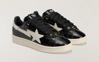Complex first shared unauthorized photos of the latest linkup between BAPE® and the Three Stripes, a partnership that's been in motion for more than 20 years. The aforementioned Adistar HRMY running shoe dons the most eye-catching makeover of the newly-surfaced footwear trio, as adidas Samba and Campus 00s offerings keep things understated in mostly "Off White" and "Core Black" looks, respectively. The chunky Campus silhouette features "Gold Metallic" details throughout the upper, which indulges in a football-reminiscent paneling. STA™ emblems take over sidewalls on both Originals styles.