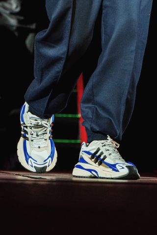Wearing the unreleased adidas Jellyfish in its new electric blue colorway, the duo gave the crowd a first real look at the collaboration before its first drop on October 26.