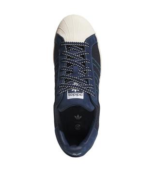The "Wonder White" and "Night Indigo" models maintain the Superstar's classic shell-toe design but elevate the look with a cream rubber finish extending to the spiked traction underneath, echoing the details of Edison Chen's initial offerings. These sneakers are constructed from a balanced mix of open mesh, which forms the base layer, and strategic additions of rubber, suede, and leather, enhancing both aesthetics and durability.