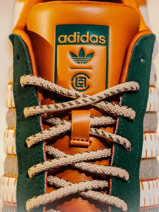 Branding is kept minimal, with gold Chinese characters on the lateral heel and a tonal CLOT logo stamped on the leather heel tab. The signature rubber shell toe remains intact, grounding the design in Superstar tradition while allowing the rest of the shoe to deviate from the script. It's a wearable representation of CLOT’s refined yet playful approach that continues to redefine adidas classics.