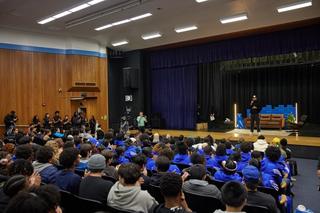 The day began with a school-wide assembly, where Lillard addressed students, coaches, and athletes with a heartfelt speech reflecting on his high school basketball days and the role Oakland played in shaping his path to the NBA. In a special announcement, Dame unveiled the PSU Scholarship, a life-changing opportunity for one Oakland High student, reinforcing his commitment to giving back to his community.