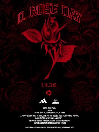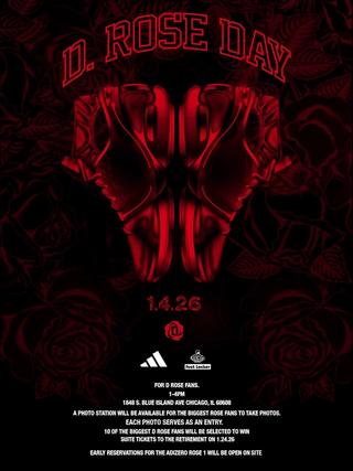 The celebration kicks off on Sunday, Jan. 4, at 1848 S. Blue Island Ave. in Chicago with D. Rose Day, a fan-oriented event. A special photo booth will be available during the pop-up, allowing followers of the former Bulls player to showcase their admiration and appreciation for him. Each photo taken will count as an entry for a contest that'll allow 10 loyal fans to attend Derrick Rose Jersey Retirement Night at the United Center on Jan. 24. Lucky winners will view the ceremony from a suite. Additionally, early Foot Locker reservations for the AdiZero Rose 1 OG will be available on-site ahead of the pair's in-store only launch on Saturday, Jan. 17.