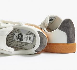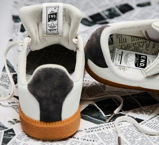 To cement the BW Army "Chip Shop" collaboration as part of END. Clothing's 20th anniversary celebration, Christiaan Ashworth and John Parker placed a collage of past linkups with the Three Stripes across the insoles. The playful touch mirrors the tradition of wrapping fish and chips in newspaper.