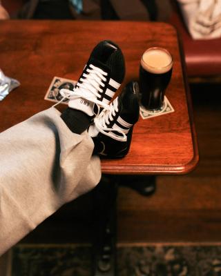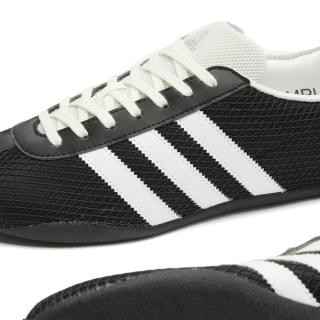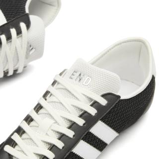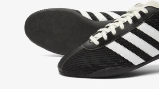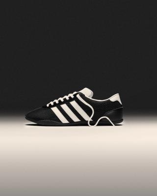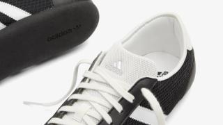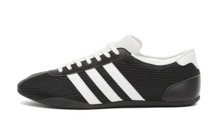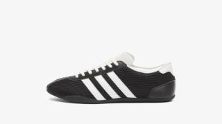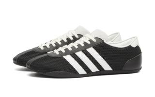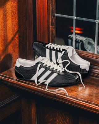 Low profile and understated, the project features an elegant satin base and open mesh construction. A black finish claims the bulk of the silhouette, but contrast takes over profile 3-Stripes, tongues, and inner lining. The 20-year-old retailer from Newcastle stamps its name on each tongue, as well as on the footbeds, adding another tally to the storied relationship between British and German institutions.