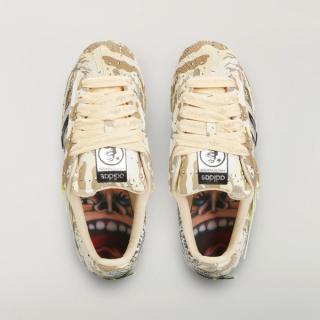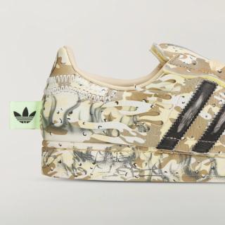 Inspired by the idea that people can still shine in the most challenging of circumstances, HELLSTAR is known for a bold, rebellious aesthetic. Its first-time collaboration with adidas Originals is no different, donning a predominantly black-and-white color scheme accompanied by flame graffiti and panels; haphazard stitching, and "reconstructed" tongue and lace guards. The result is a "shell-toe" that could very well be mistaken for an ornate custom job.