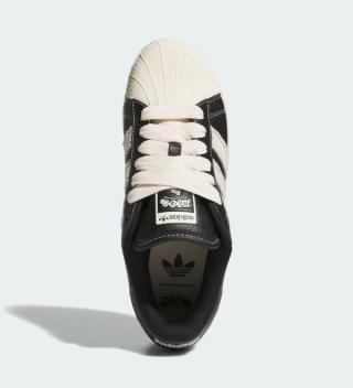 Given that the Superstar has been celebrating its 55th anniversary, the model has emerged in dozens of new styles over the last nine months—including limited collaborations with Wales Bonner, HELLSTAR, and South Korea's Thug Club. DIOS' first proper public launch—clad in a "Core Black/Crew White/Gold Metallic" color scheme—deviates from some of its kin, arriving in the form of the Superstar XLG.