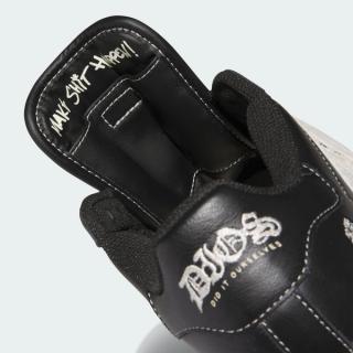 The silhouette's thicker sole unit and puffier proportions across the upper speak to the design's XLG (read: extra large) distinction. DIOS' touches are relatively simple, introducing contrast stitching throughout the top-half, as well as semi-distressed profile 3-Stripes, motivational messaging behind the tongues, and brand-specific visuals on the lateral heel and Achilles' heel.