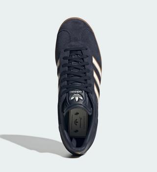The Juventus x Adidas Gazelle Terrace is dressed in a luxurious navy suede upper, perfectly mirroring the deep tones of the club’s alternate jersey. Crisp white Three Stripe overlays are accented with gilded details, adding a sophisticated touch to the design. Gold "JUVENTUS" lettering adorns the sidewall, while the heel proudly features the club’s standalone equine motif from 1979—a nod to its storied history. Special graphic insoles further connect the sneaker to Juventus’ latest kit.