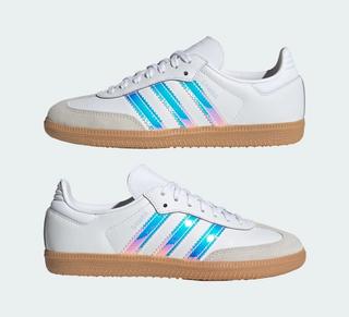 Enjoy official photos of the iridescent stripes-donning Sambas ahead. Pairs should release via Adidas.com soon for $80 each.