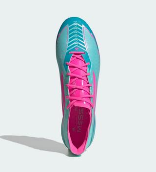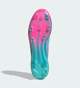 Underfoot, the firm ground football boot takes notes from the newly-surfaced Adilette slide. The SPEEDFRAME outsole delivers robust, reliable traction without sacrificing the Floridian makeover. A Messi wordmark underneath the forefoot is accompanied by a gradient donning the "Flash Aqua/Lucid Pink" tones from up-top. Together, each aforementioned element comes together to breathe new life into the elite footwear product for the beautiful game.