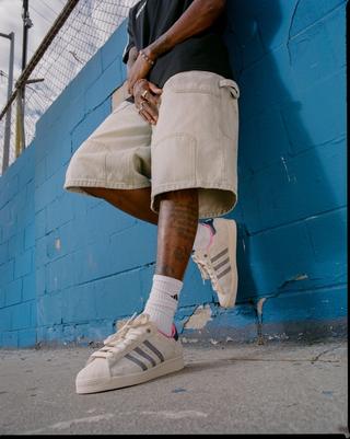 Recently, Mena took to social media to announce the next chapter in the inspirational story that MENACE has been, teasing a proper footwear collaboration with the Three Stripes. The initial post didn't confirm which silhouette would be co-branded with the LA brand's logo, but e-commerce photos have solidified that the project reimagines the iconic Adidas Superstar.