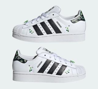 The Minecraft x Adidas partnership has landed on the iconic Superstar, outfitting the shell-toe with details inspired by the game's Creeper.