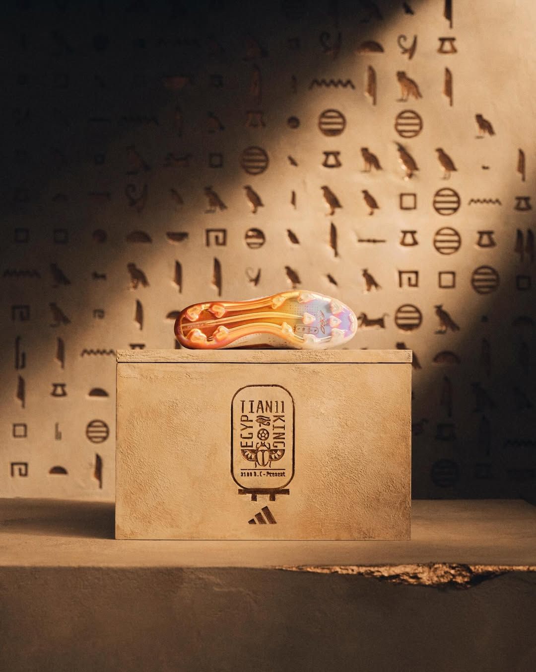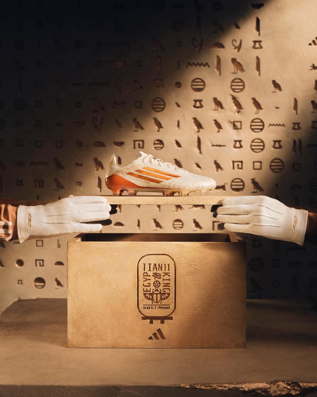 Throughout his endorsement deal with adidas, Salah has worn several special makeups of the speed-oriented F50. At the end of the 2024-25 Premier League, the German sportswear juggernaut unveiled a pair commemorating the winger's award as the top-scorer in England's top-flight. Whereas that pair included a series of eye-catching greens inspired by Liverpool's mythical symbol, the liver bird, Salah's latest gift from the Three Stripes looks to Egypt for inspiration.