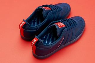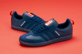 At the heart of this collection is the Orchard x New England Revolution Samba ADV—a shoe that masterfully straddles the worlds of skateboarding and soccer. This iconic silhouette, already a staple on soccer fields, now gets a skate-ready revamp. Rendered in a distinctive indigo and red colorway, the shoe features Orchard’s name tastefully etched on the serrated Three Stripes, while the New England Revolution logo graces the adidas Trefoil on the tongue. Crafted from synthetic leather and suede, this Samba ADV is not just for show—it's equipped with ADV skate performance technology, ready to tackle any trick in your repertoire.