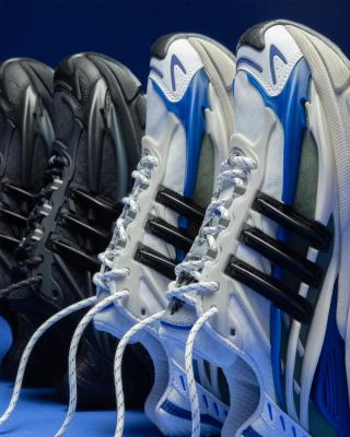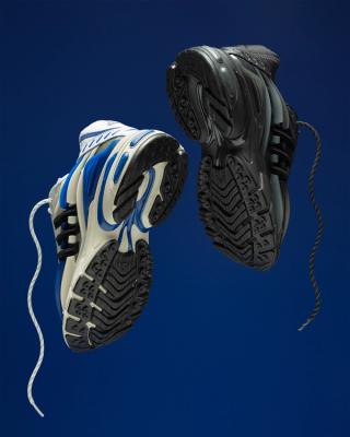 Built on the foundation of the 2005 Adistar Cushion 3, Pharrell’s VIRGINIA Adistar Jellyfish transforms a technical runner into something far more sculptural. The exaggerated, wave-like midsole — inspired by the floating gills of a jellyfish — defines the shoe’s stance, while layered mesh uppers and an exoskeletal cage structure create depth and movement. adiPRENE cushioning reprises its original performance role underfoot, grounding the avant-garde upper in familiar adidas running heritage.
