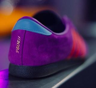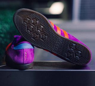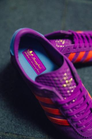 Unlike the pair from 2020, the impending release features a vibrant color palette inspired by the neon lights that reflect off the Huangpu River. Rich 'Purple Burst' takes over the trainer's suede upper, with orange contrast landing in the form of 3-Stripes branding on the profiles. Shimmering golden Shanghai text appears on the lateral side to honor China's biggest city. Lastly, the premium collaboration boasts a 'Semi Blue Burst' on its Achilles' heel panel.
